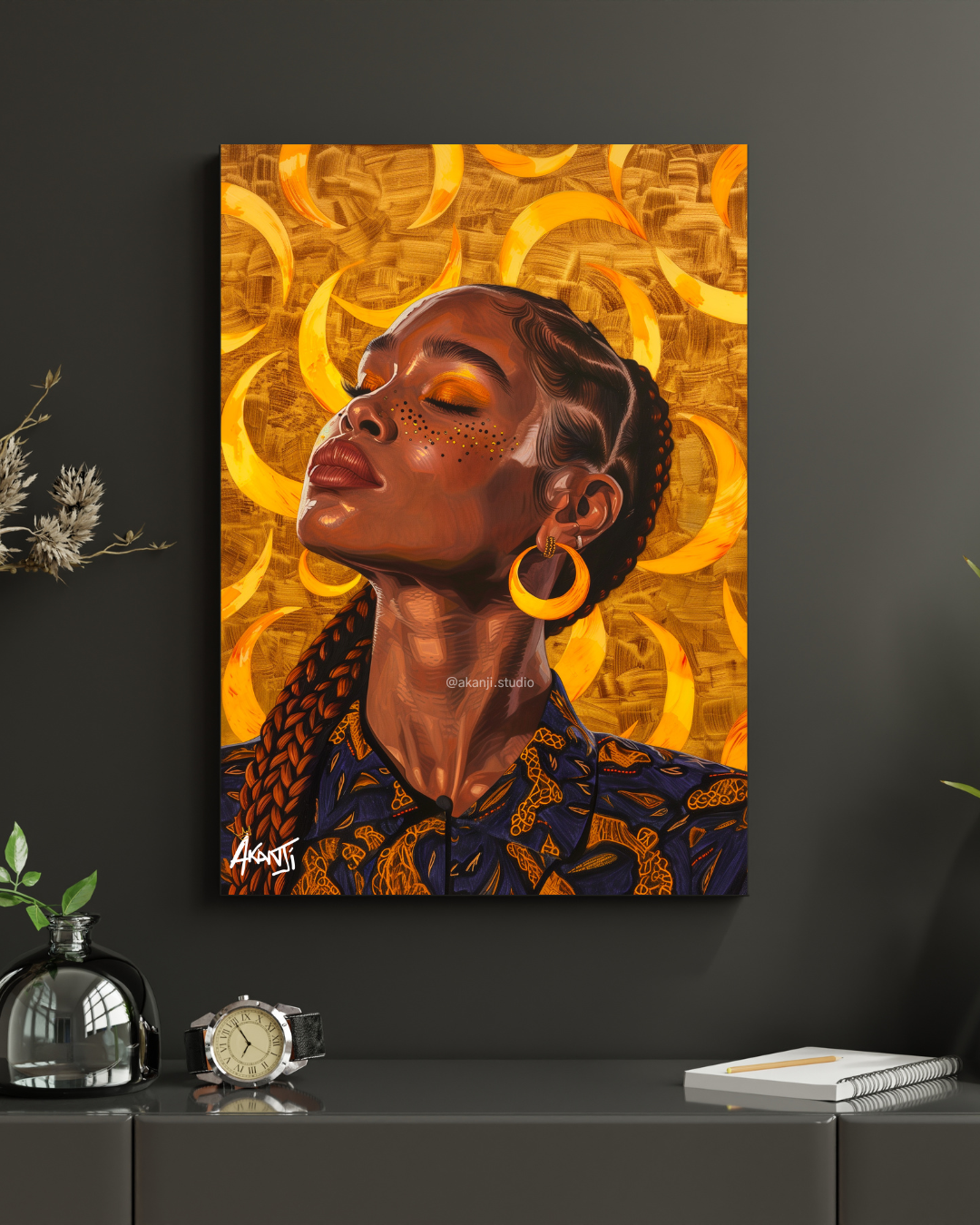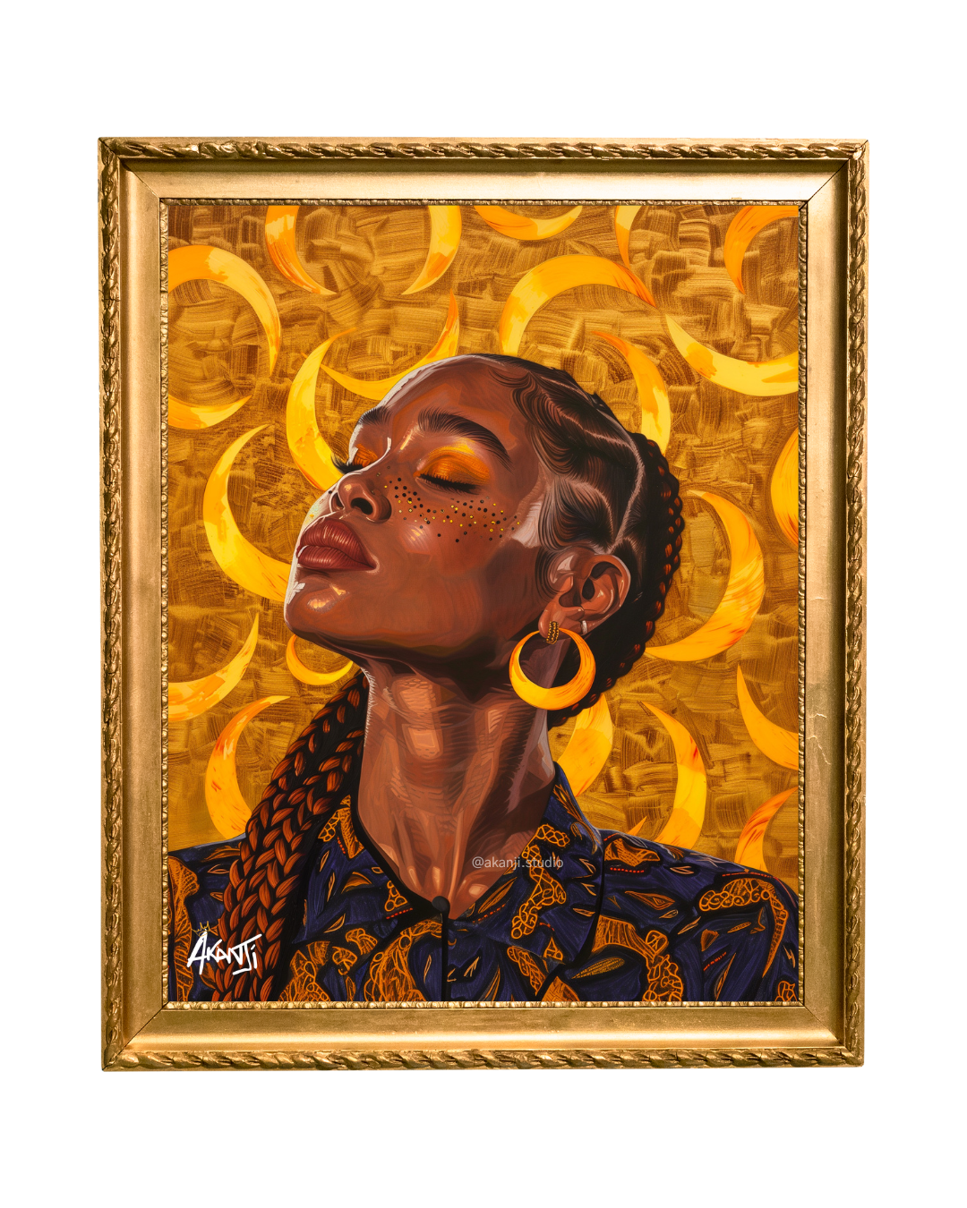 'Moon Crescent Blood Lady1' Print: Children of The Sun With Moon Crescent Blood by Akanji Studio
