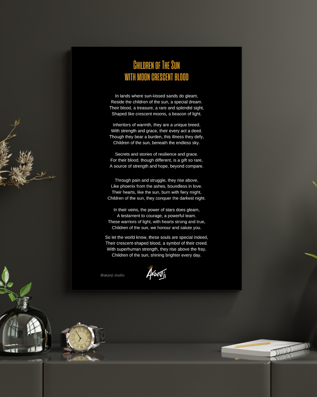 1 Free Poem Included With Every Order: Poem Print: Children of The Sun With Moon Crescent Blood by Akanji Studio. 30x20cm Print.